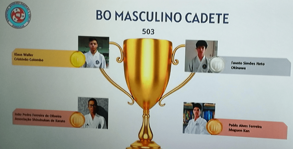 João Pedro Oliveira – 2º Lugar Nunchako Cadete | 1º Lugar Tunqua Cadete | 3º Lugar Sai Cadete e Junior